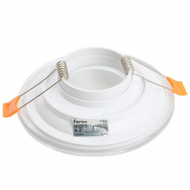Светильник встраиваемый Feron DL8270 потолочный MR16 G5.3 прозрачный, белый 51151