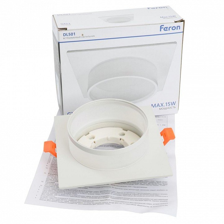 Станьте первым, кто оставит отзыв о товаре Светильник встраиваемый Feron DL501 потолочный GX53 белый квадрат 51087.