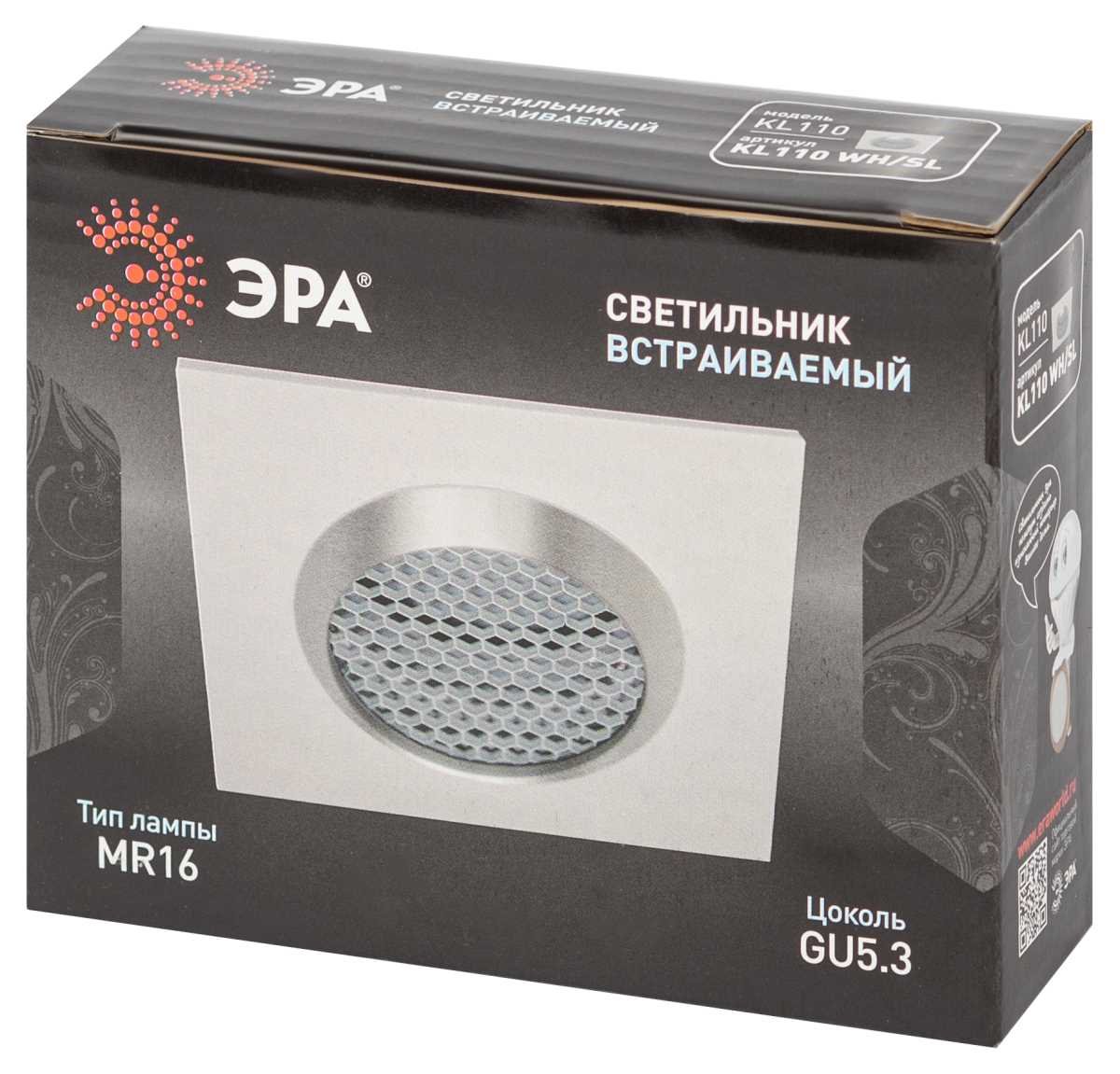 Станьте первым, кто оставит отзыв о товаре Светильник встраиваемый алюминиевый ЭРА KL110 WH/SL под лампу MR16 GU5.3 белый/серебро матовый Б0061532.