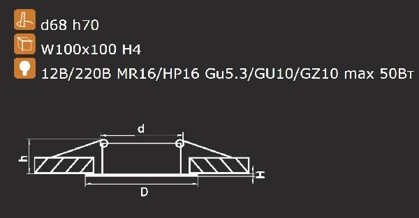 Диаметр врезного отверстия, мм: 68