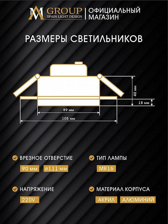 Тип светильника: точечный светильник
