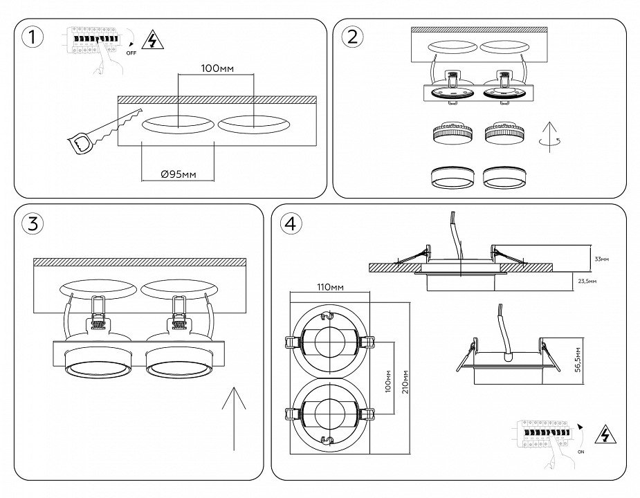 Тип установки светильника: встраиваемый