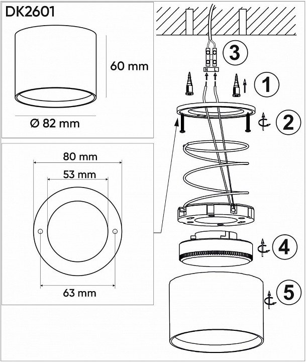 Тип установки светильника: накладной