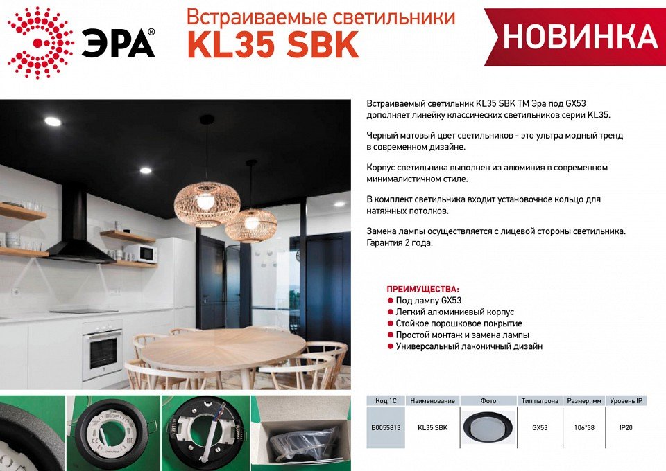 Станьте первым, кто оставит отзыв о товаре Встраиваемый светильник Эра KL35 SBK Б0055813.