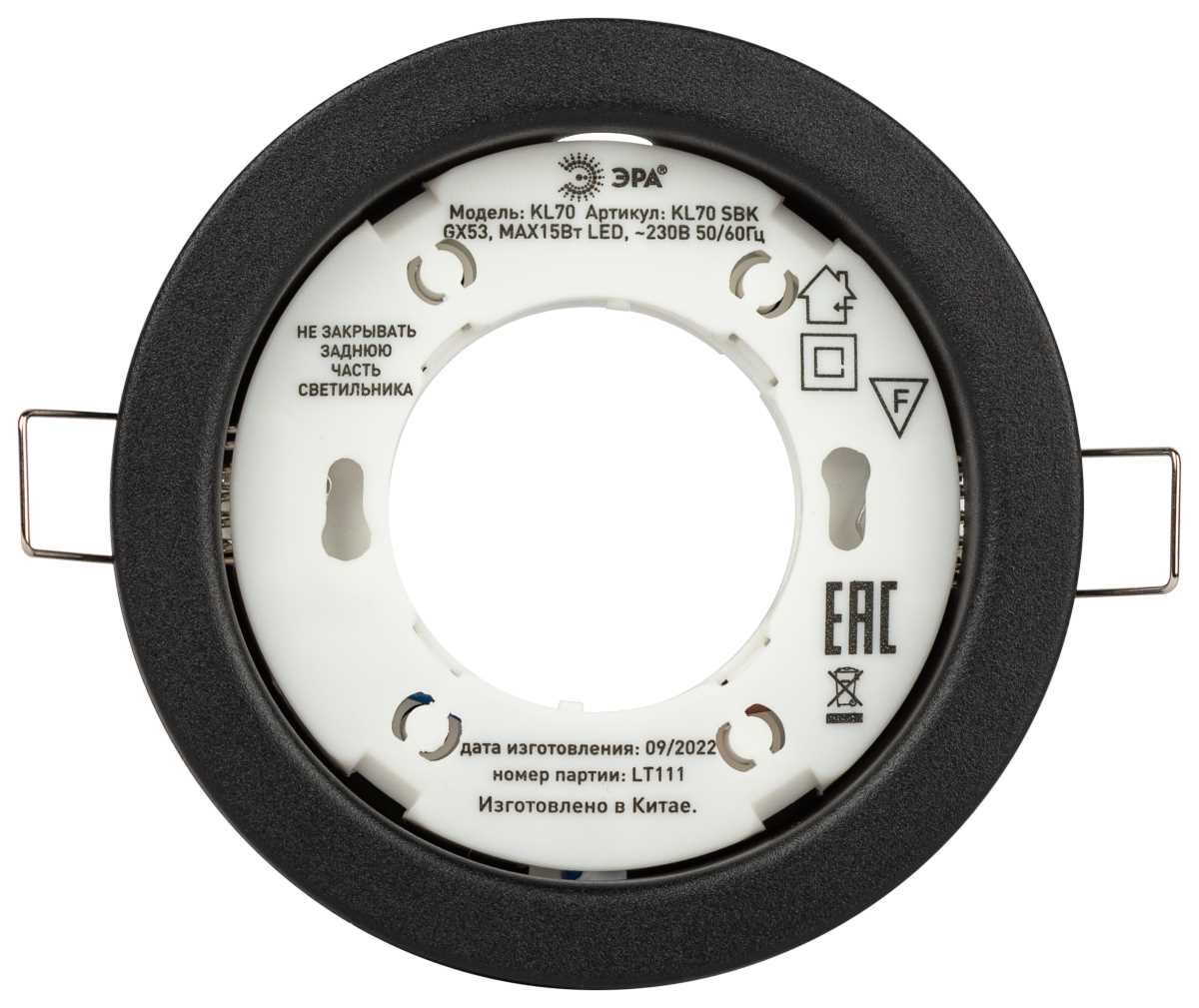 Станьте первым, кто оставит отзыв о товаре Светильник встраиваемый ЭРА KL70 SBK под лампу GX53 черный Б0057476.