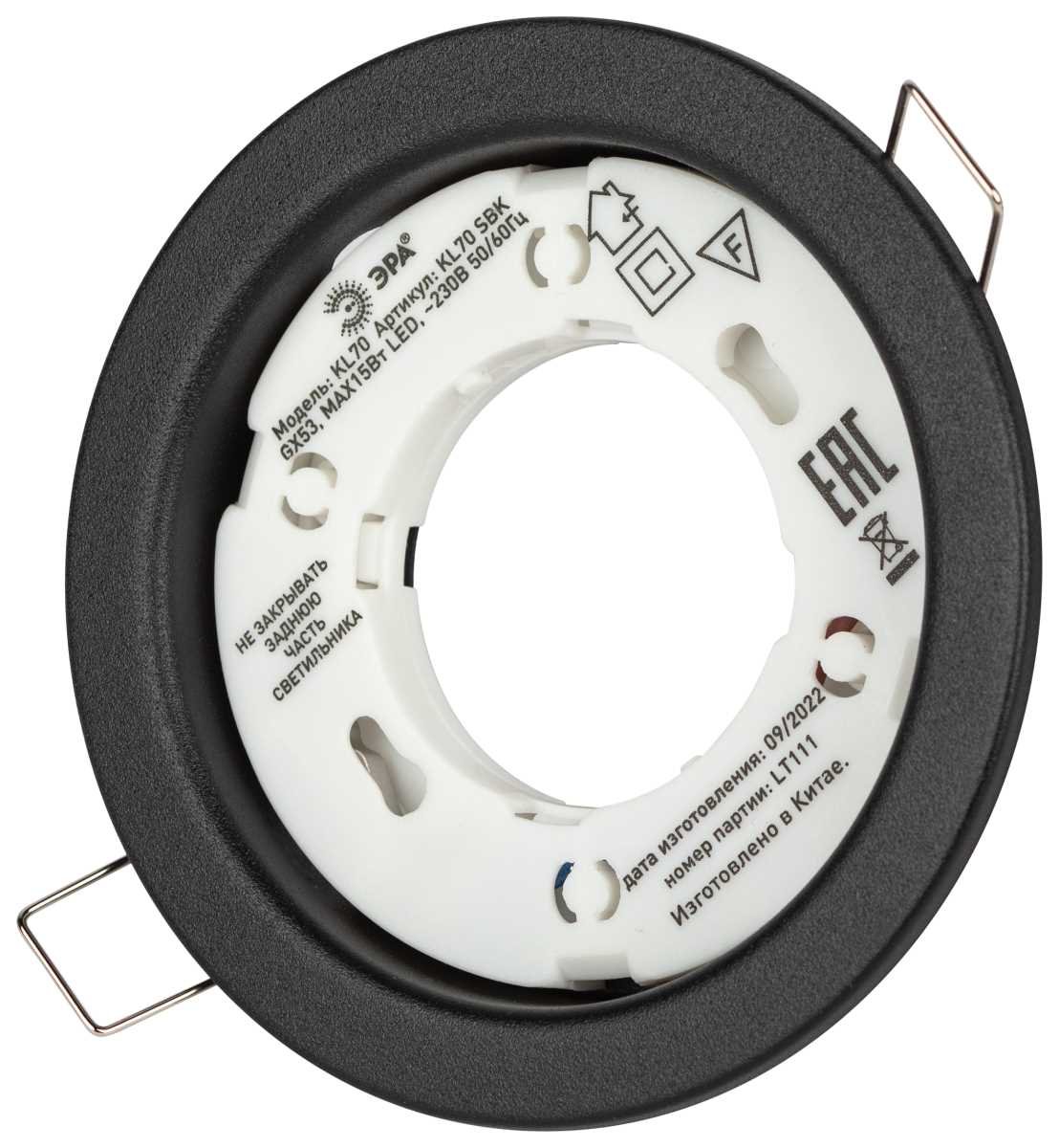 Светильник встраиваемый ЭРА KL70 SBK под лампу GX53 черный Б0057476
