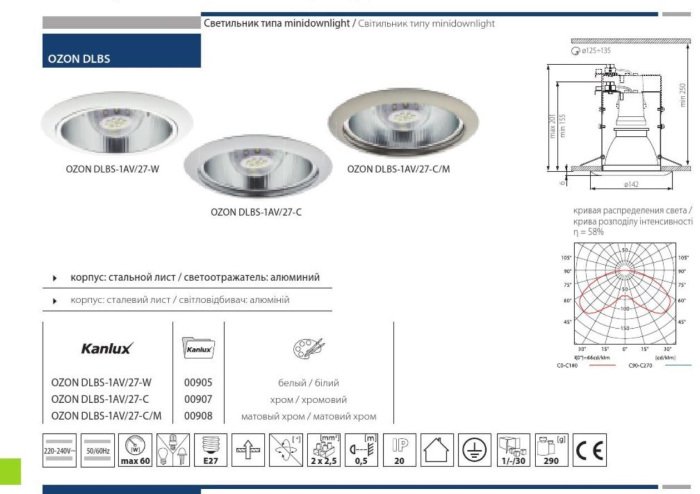 Карданные светильники Kanlux OZON DLBS-1AV/27-C 907