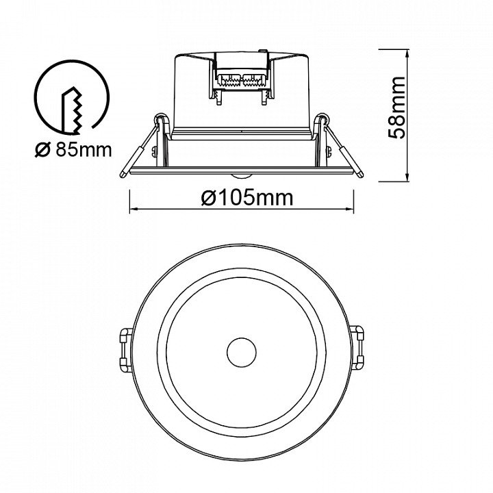 Диаметр врезного отверстия, мм: 85