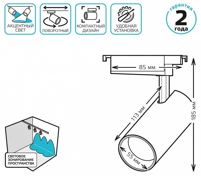 Главная Трековые светильники Светильник на штанге Gauss TR TR080