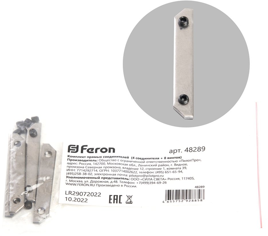 Станьте первым, кто оставит отзыв о товаре Комплект прямых соединителей 4 соединителя и 8 винтов Feron 48289.