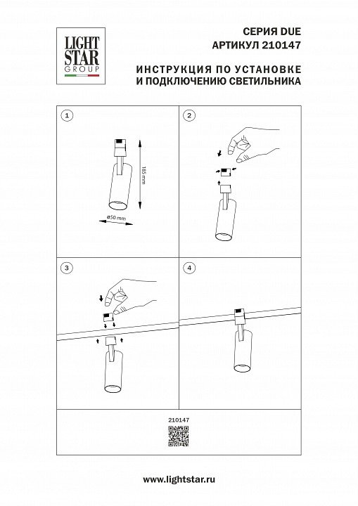 Главная Трековые светильники Светильник на штанге Lightstar Due Hermes 210147