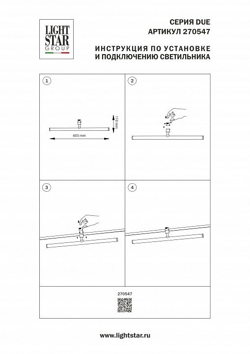 Главная Трековые светильники Светильник на штанге Lightstar Due Hermes 270547