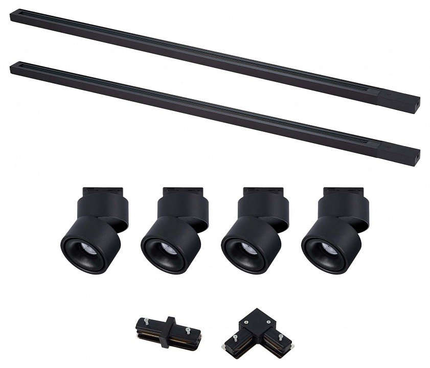Компоненты, входящие в комплект: 2 шинопровода. 4 светильника. коннекторы