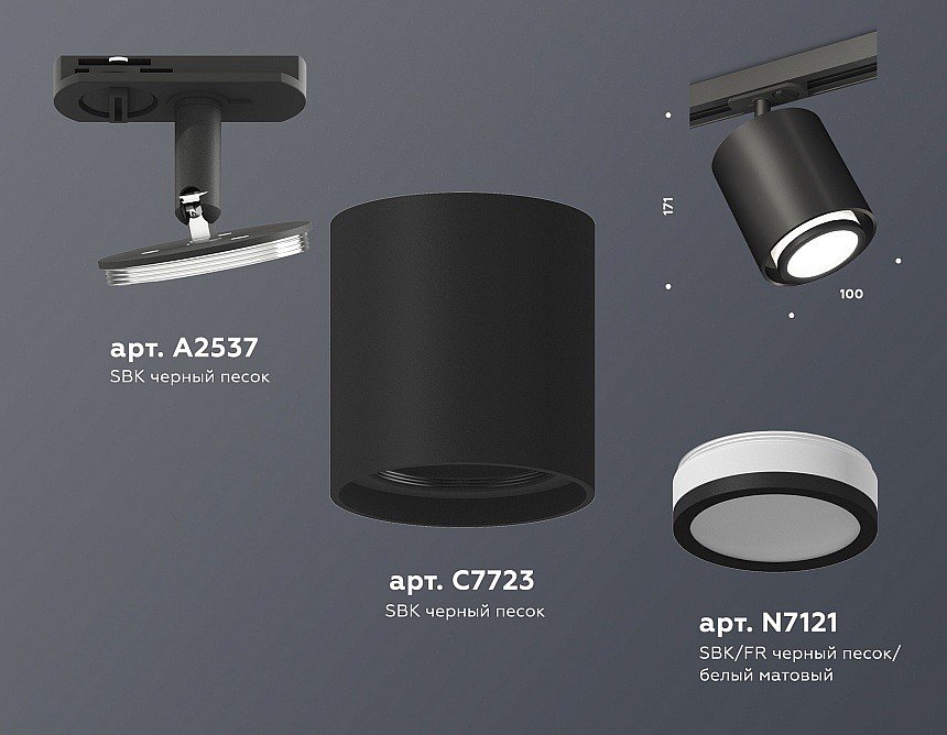 Компоненты, входящие в комплект: крепеж трековый d70. корпус накладной d95. насадка передняя d70