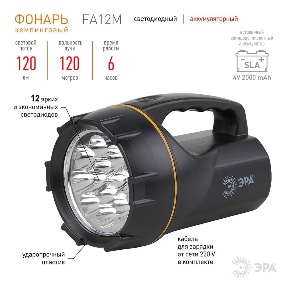 Фонарь-прожектор светодиодный ЭРА аккумуляторный 140 лм FA12M