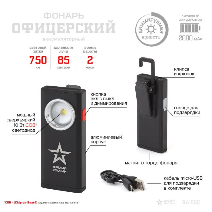 Станьте первым, кто оставит отзыв о товаре Ручной фонарь Армия России RA-802.