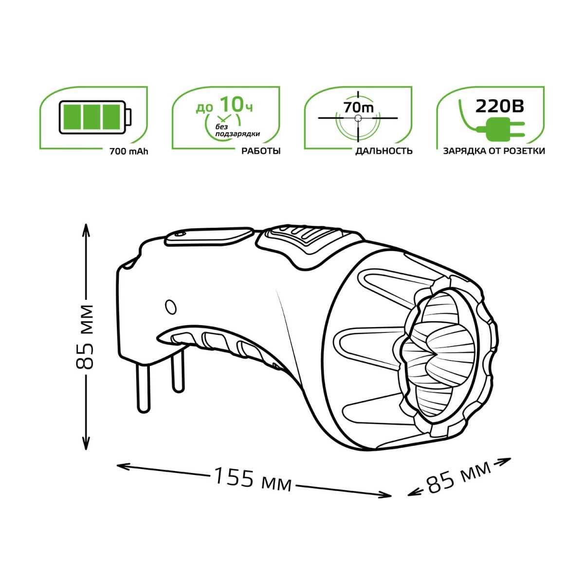 Главная Уличные светильники Ручной светодиодный фонарь Gauss аккумуляторный 155х85 60 лм GF105