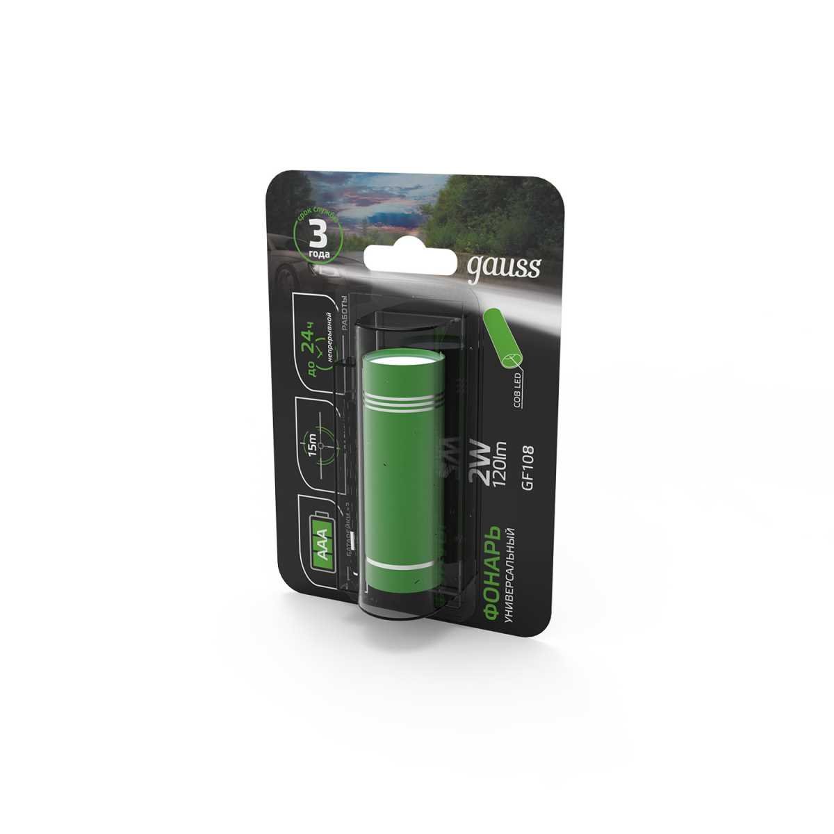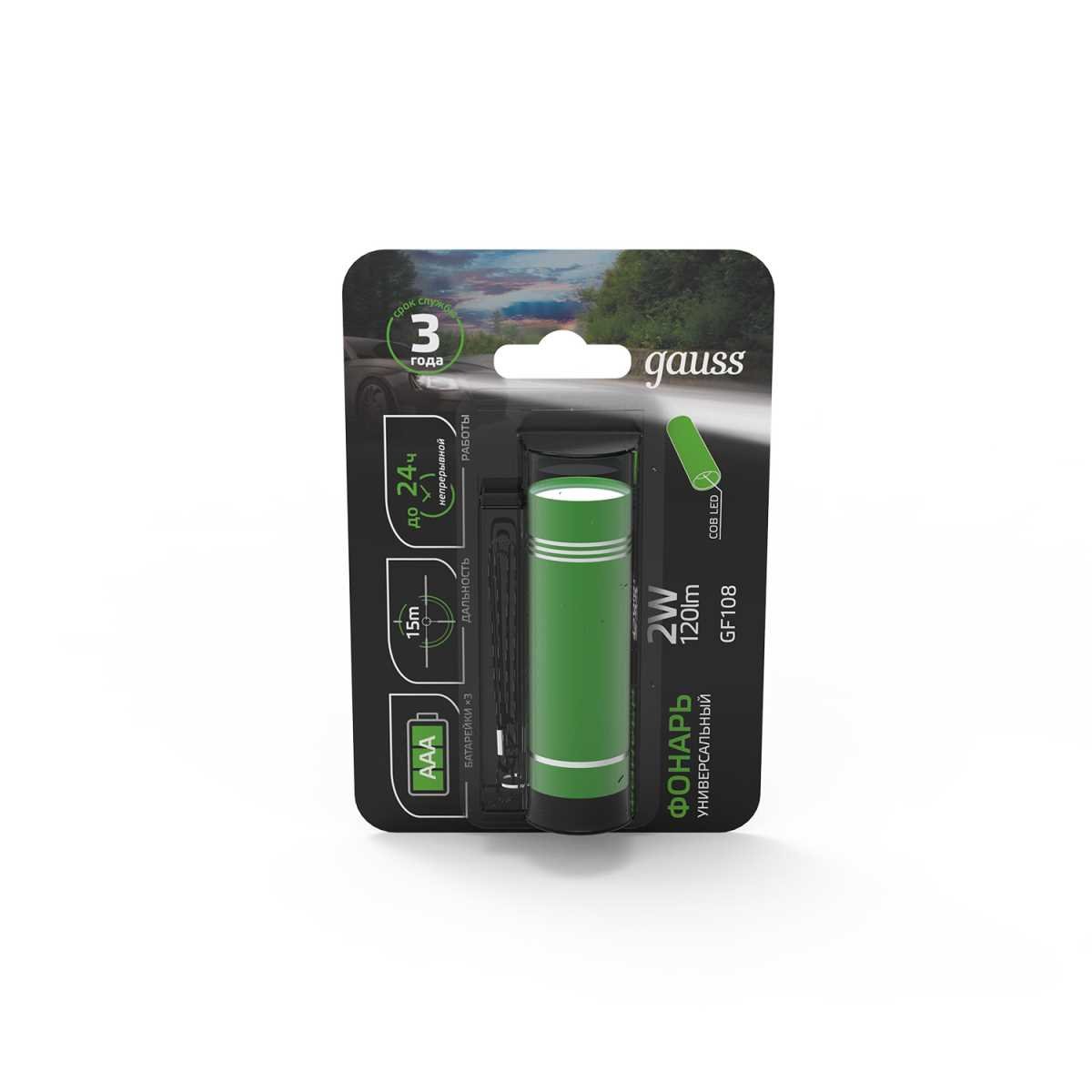 Ручной светодиодный фонарь Gauss от батареек 90х25 120 лм GF108