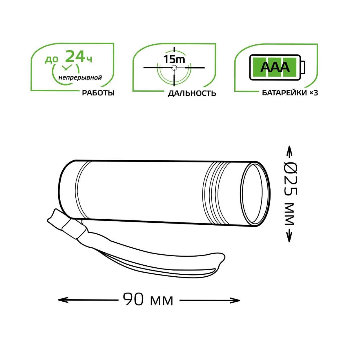 Станьте первым, кто оставит отзыв о товаре Ручной светодиодный фонарь Gauss от батареек 90х25 120 лм GF108.