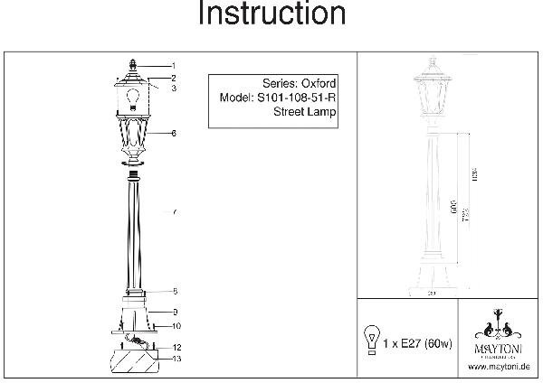 Станьте первым, кто оставит отзыв о товаре Наземный фонарь Maytoni Oxford S101-108-51-R.