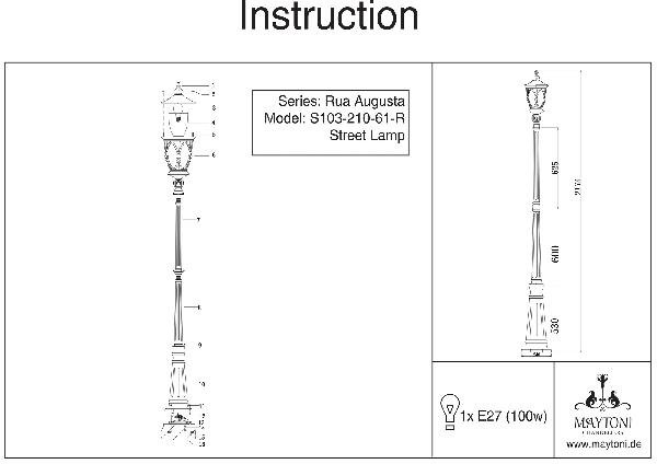 Главная Уличные светильники Уличный столб Maytoni Rua Augusta S103-210-61-R