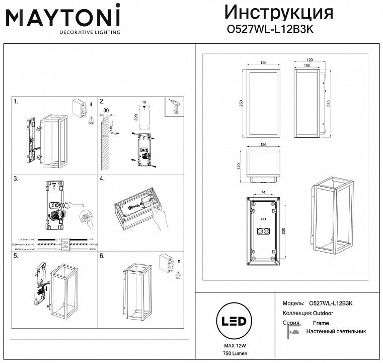 Станьте первым, кто оставит отзыв о товаре Накладной светильник Maytoni Outdoor Frame O527WL-L12B3K.