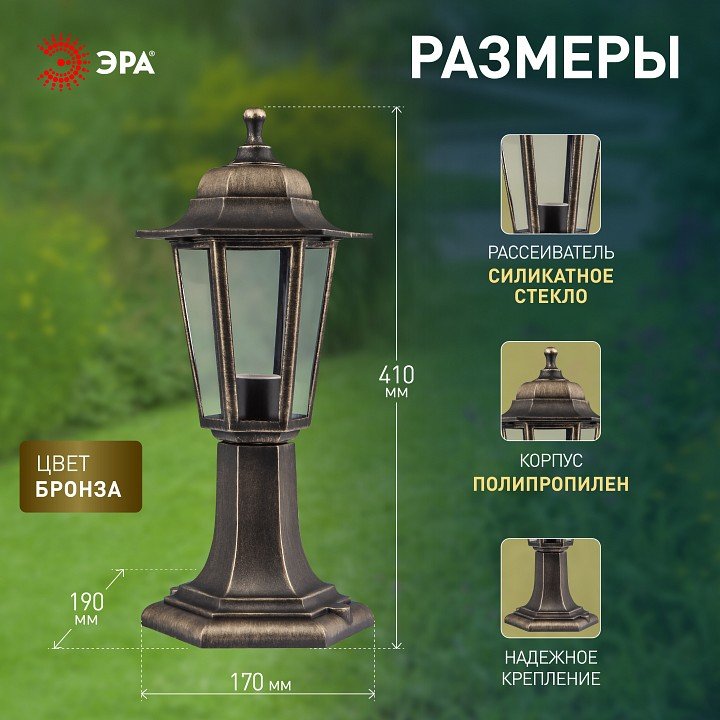 Станьте первым, кто оставит отзыв о товаре Наземный низкий светильник Эра НТУ 06-60-001 бронза.