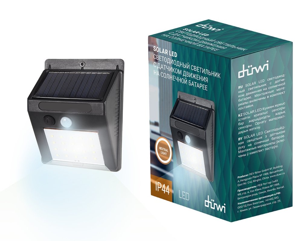 Станьте первым, кто оставит отзыв о товаре Архитектурный настенный светодиодный светильник Duwi Solar LED на солнеч. бат. с датчиком движ. 24297 0.