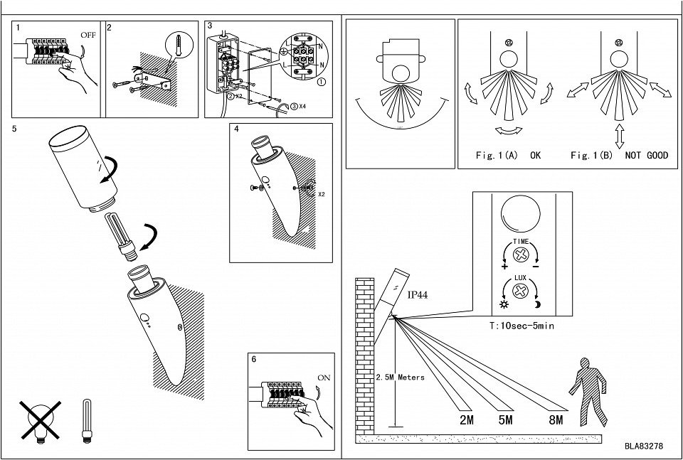 Площадь освещения, м2: ? 0.8