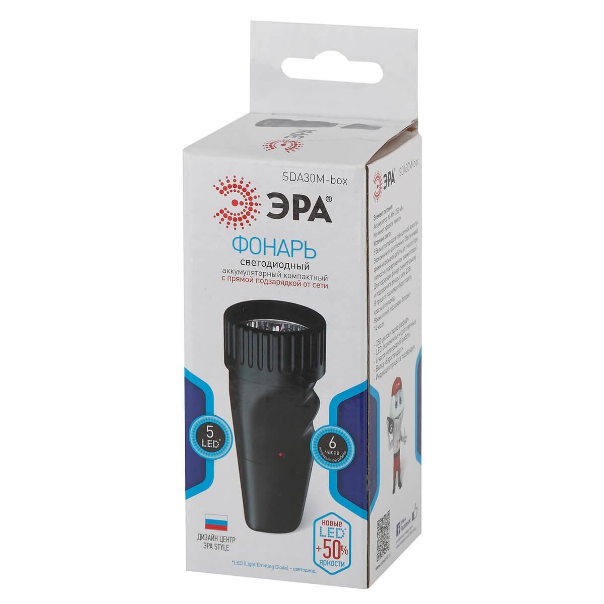 Ручной светодиодный фонарь ЭРА аккумуляторный 134х55 40 лм SDA30M-Box Б0020023