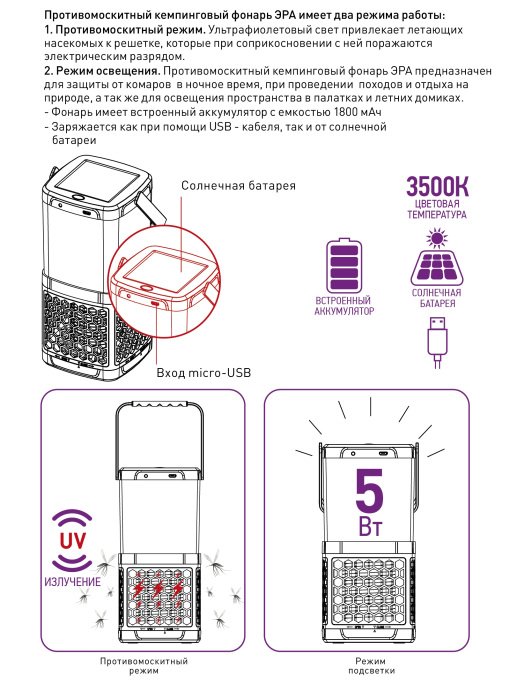 Станьте первым, кто оставит отзыв о товаре Противомоскитный светодиодный фонарь ЭРА аккумуляторный Eramf-08.