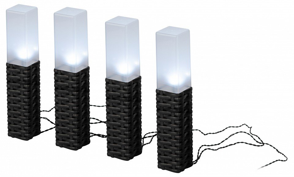 Компоненты, входящие в комплект: светильники - 4 шт.. аккумулятор 1.2 V Li-Ion (время работы без подзарядки 8 часов). солнечная батарея