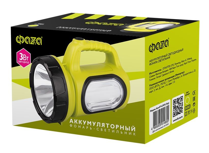 Станьте первым, кто оставит отзыв о товаре Прожекторный светодиодный фонарь ФАZA аккумуляторный 160 лм 192х132 AccuF7-L3W/L10gn.