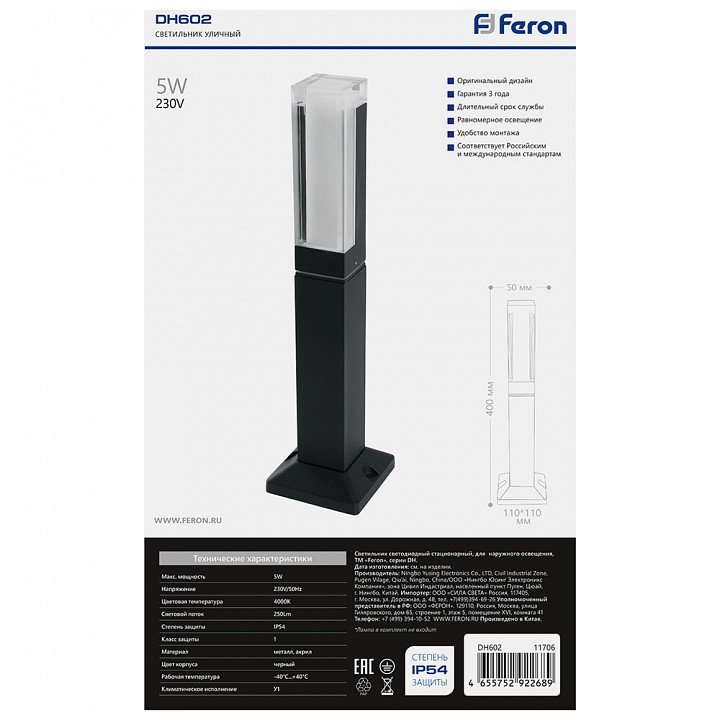 Уличный светодиодный светильник Feron Дубай DH602 11706