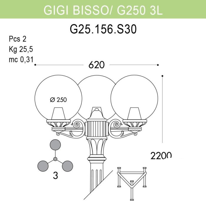 Наземный фонарь Fumagalli GLOBE 250 G25.156.S30.VYF1R
