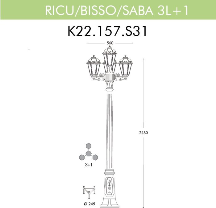 Главная Уличные светильники Наземный фонарь Fumagalli Saba K22.157.S31.VXF1R