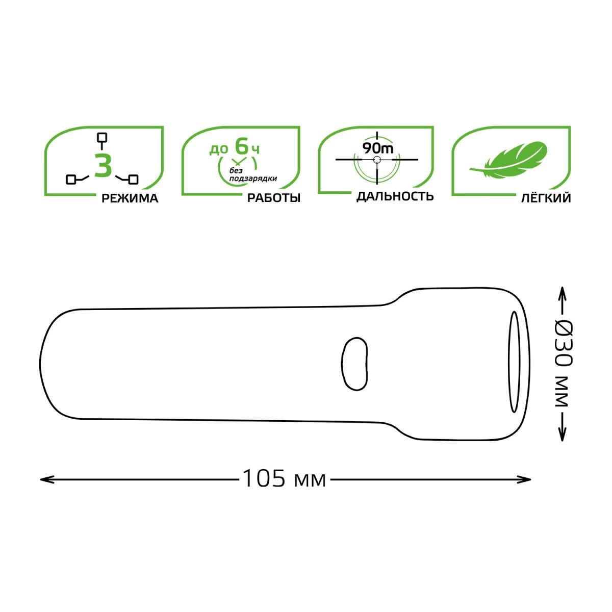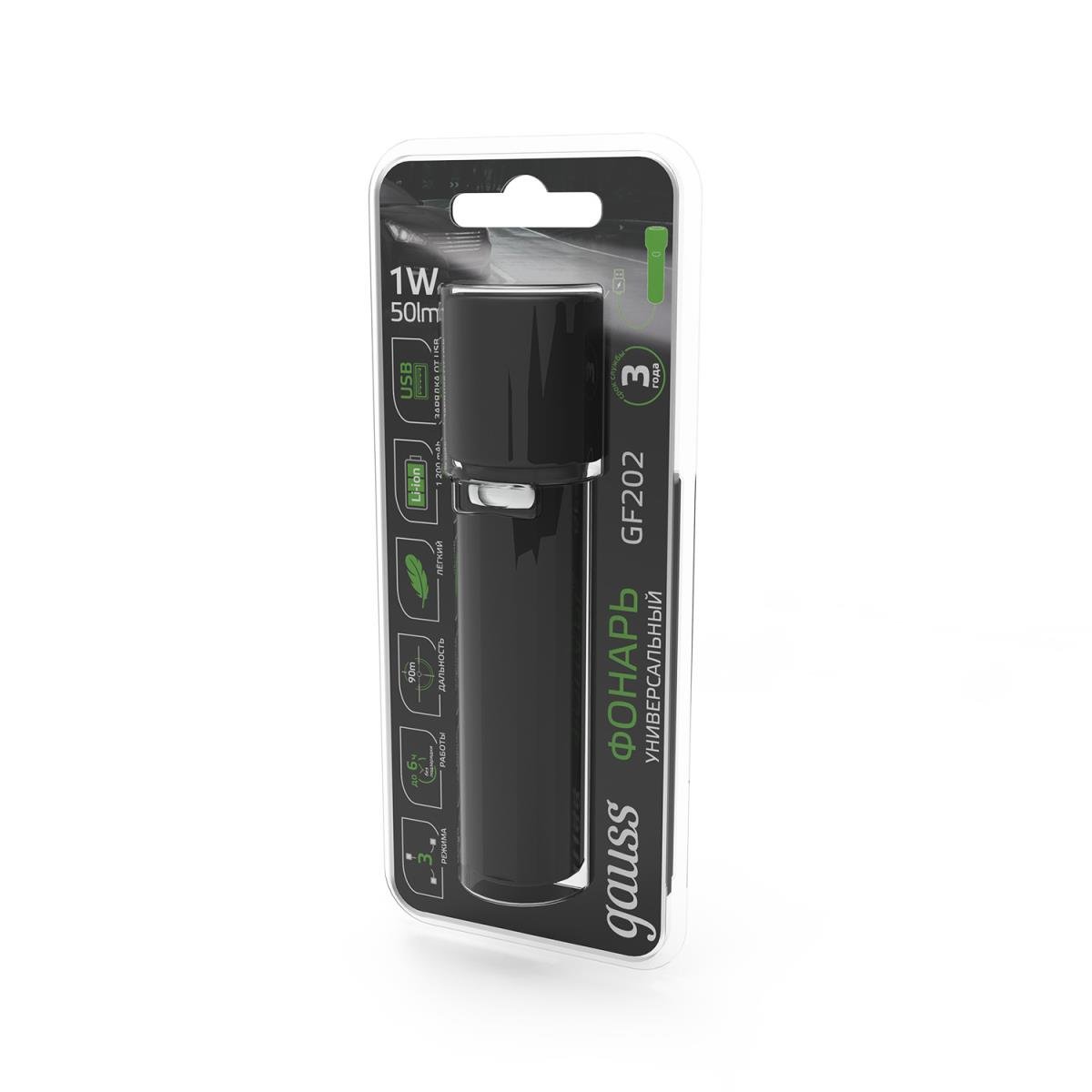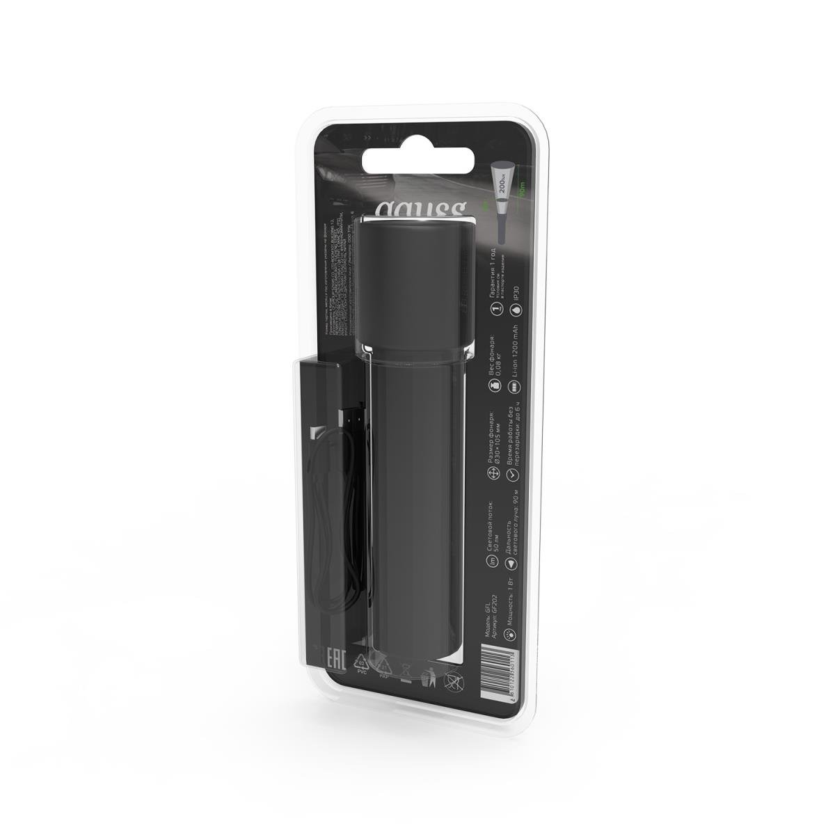 Станьте первым, кто оставит отзыв о товаре Ручной светодиодный фонарь Gauss аккумуляторный 105х30 50 лм GF202.