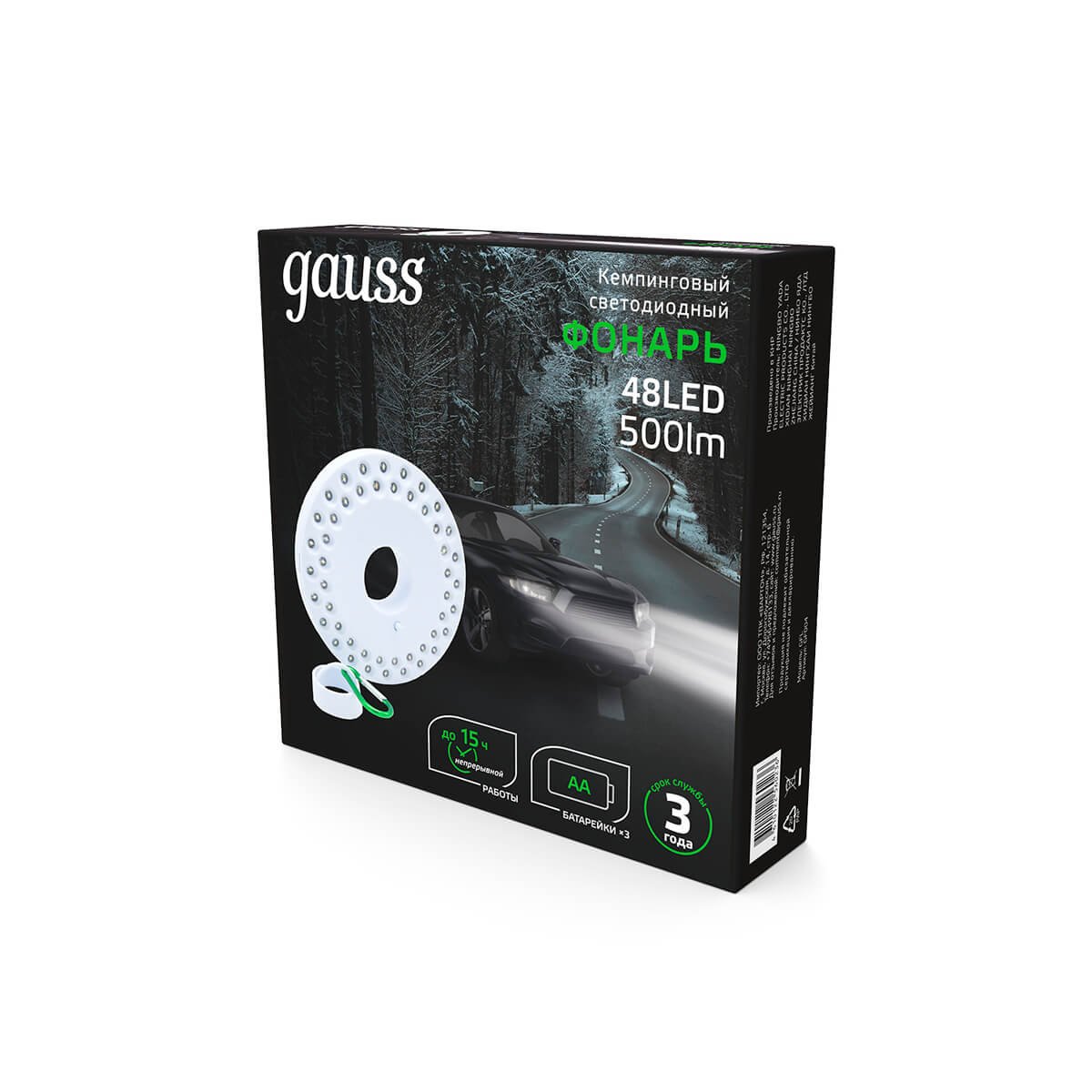 Кемпинговый светодиодный фонарь Gauss от батареек 135х20 500 лм GF004