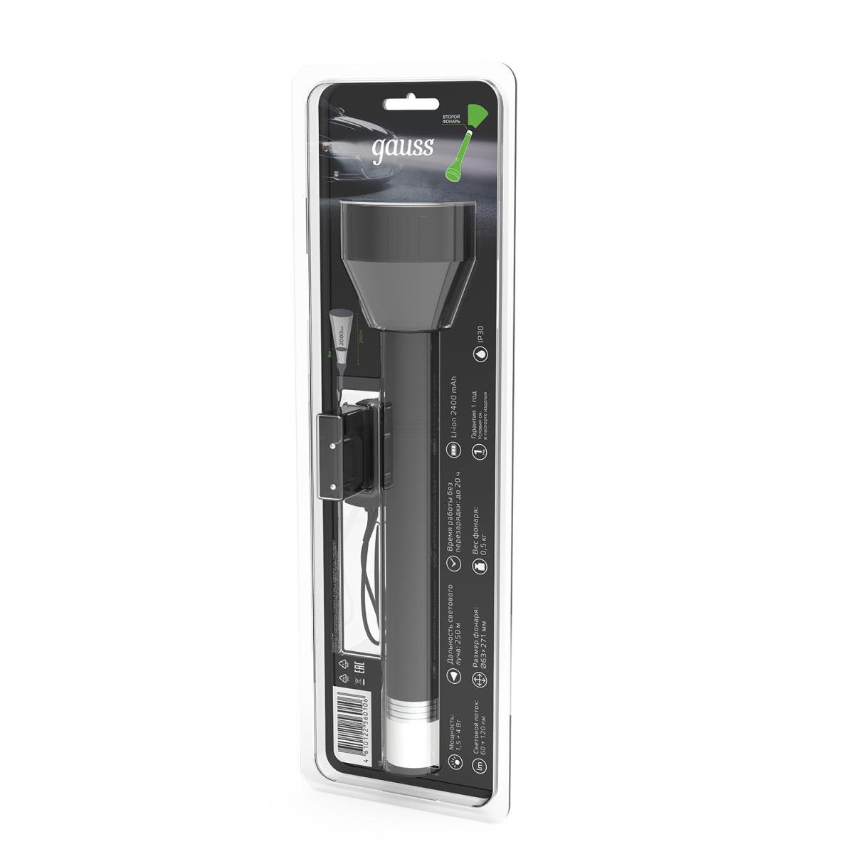 Ручной светодиодный фонарь Gauss аккумуляторный 271х63 180 лм GF201