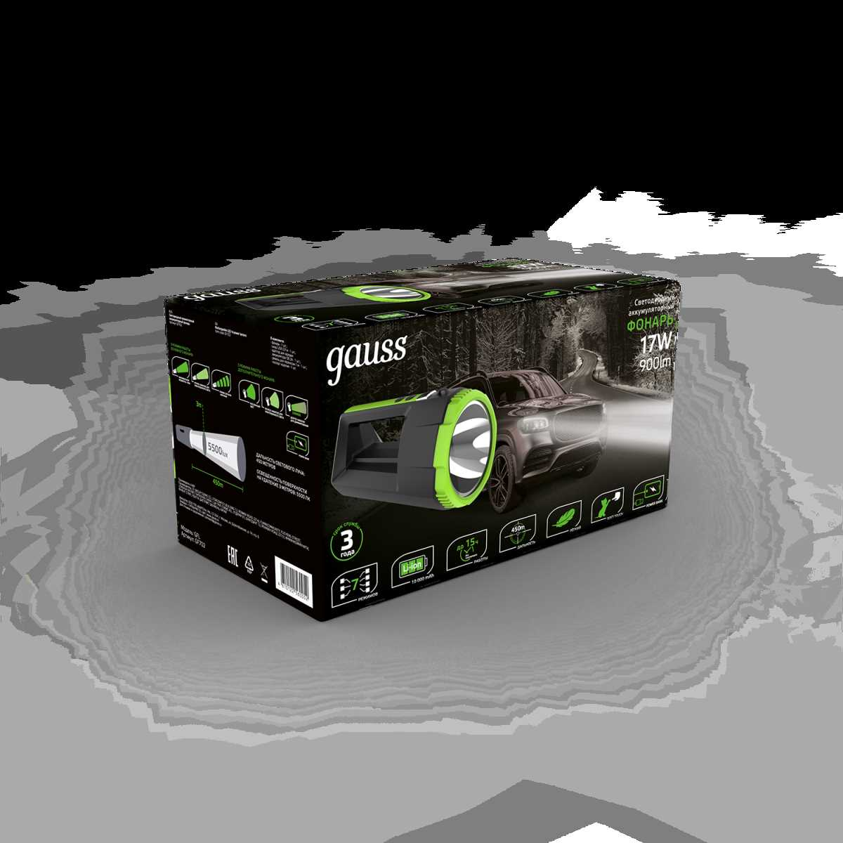 Станьте первым, кто оставит отзыв о товаре Прожекторный светодиодный фонарь Gauss аккумуляторный 288х151 900 лм GF702.