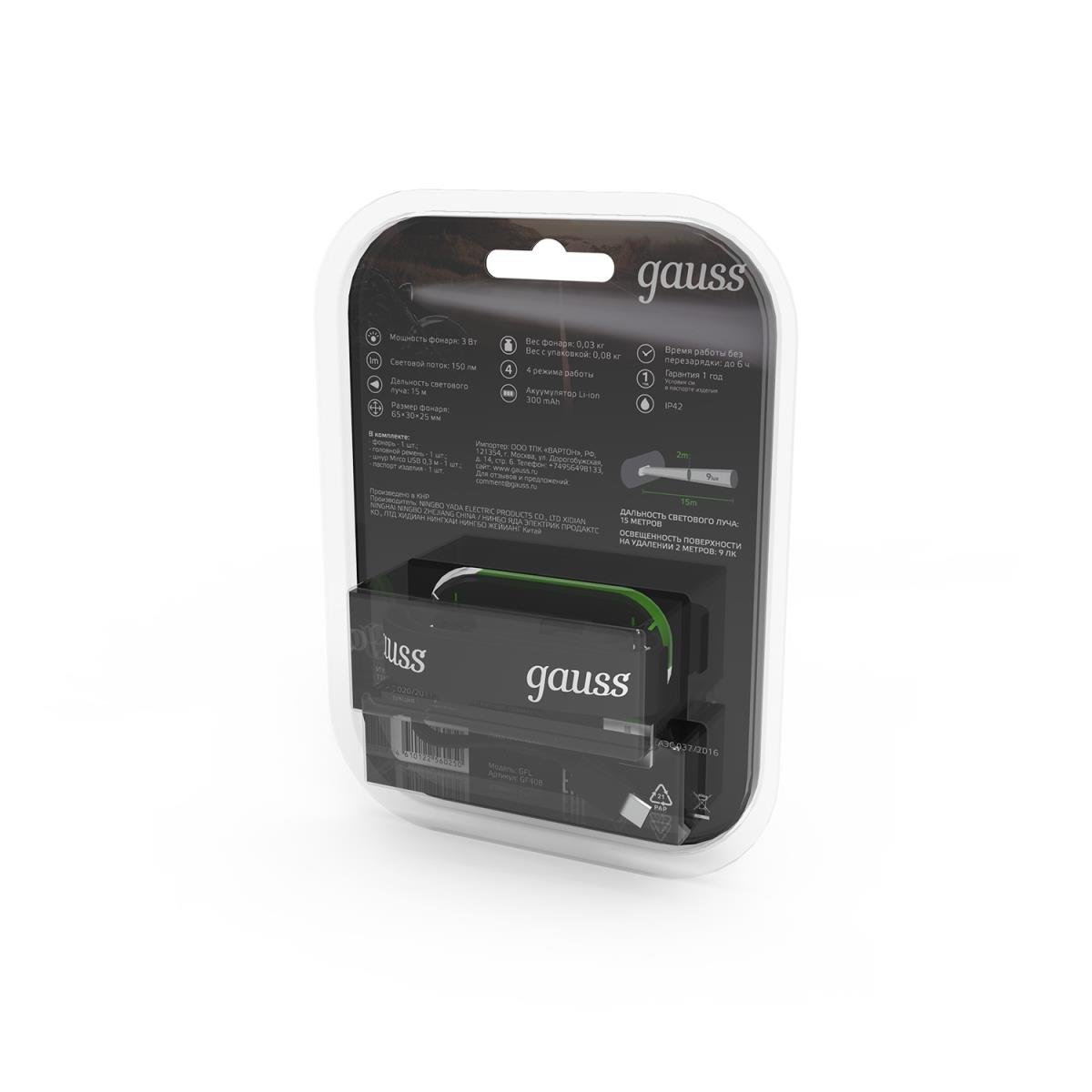 Станьте первым, кто оставит отзыв о товаре Налобный светодиодный фонарь Gauss аккумуляторный 30х60 150 лм GF408.