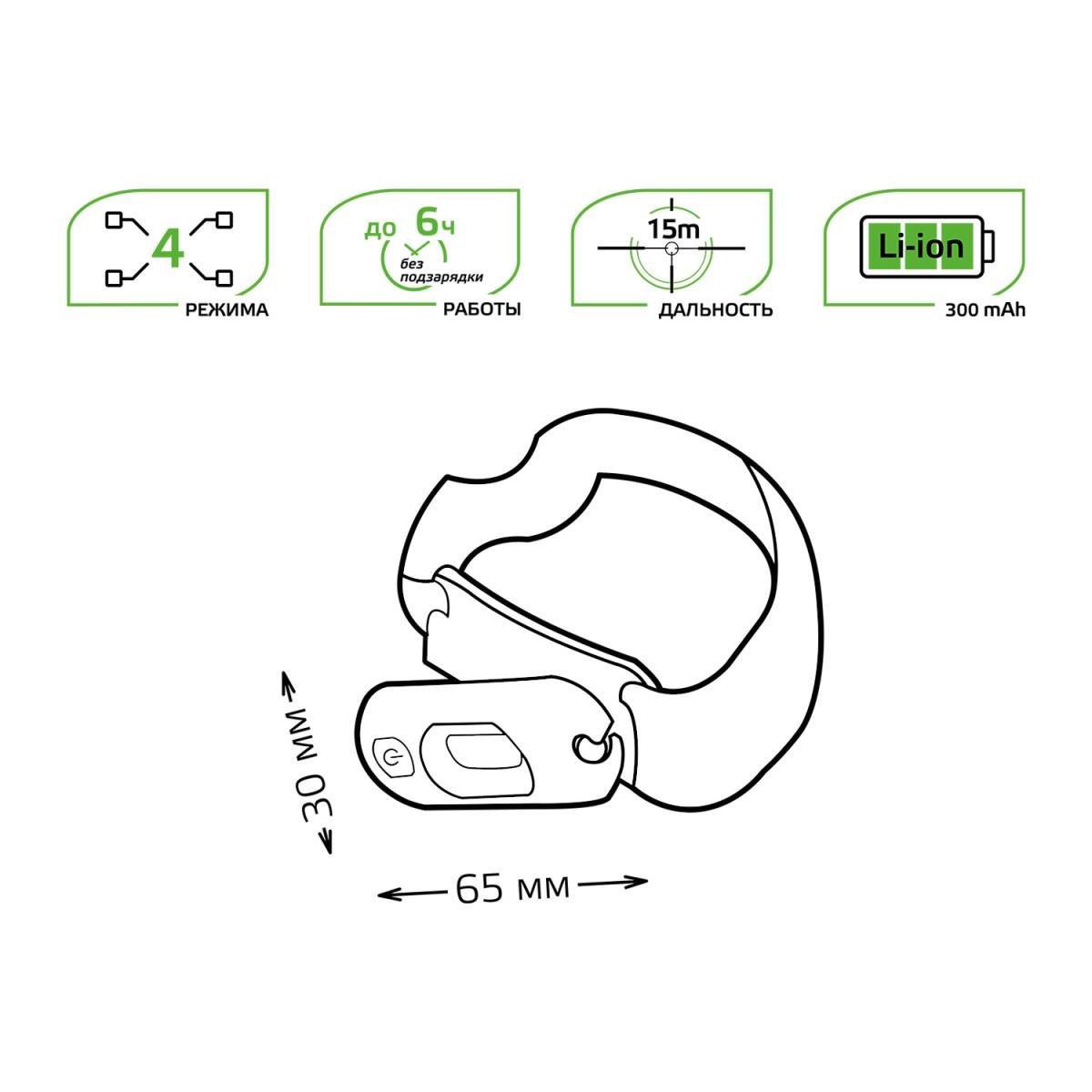 Налобный светодиодный фонарь Gauss аккумуляторный 30х60 150 лм GF408