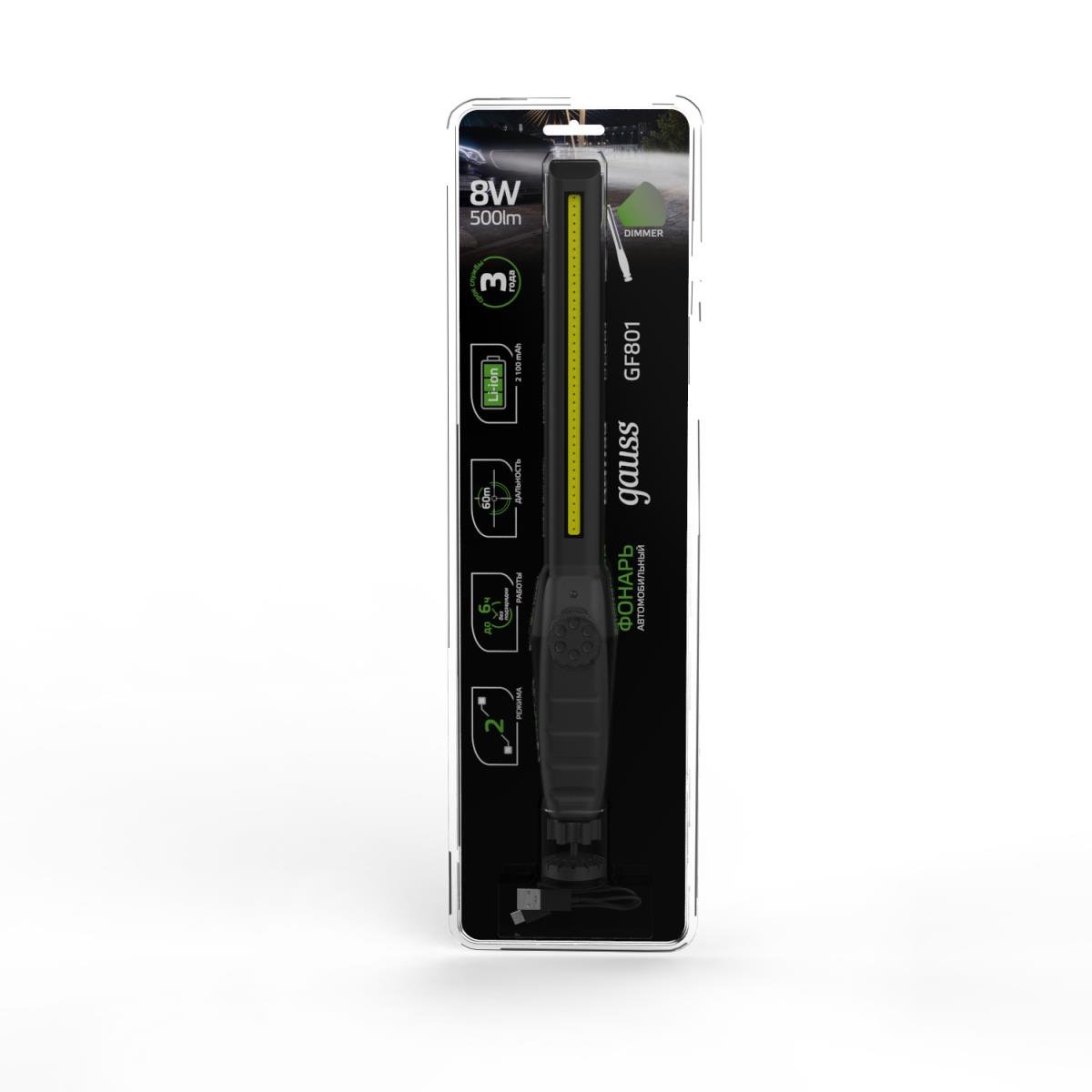 Автомобильный светодиодный фонарь Gauss аккумуляторный 375х37 500 лм GF801